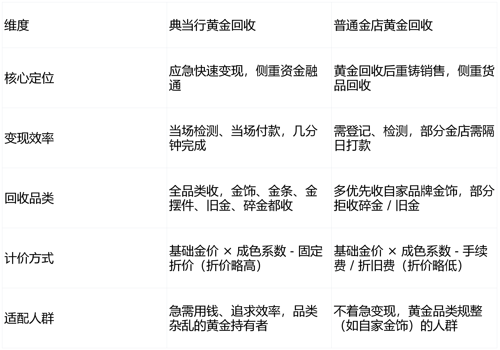 补充:典当行的黄金回收,和普通金店回收有啥区别?